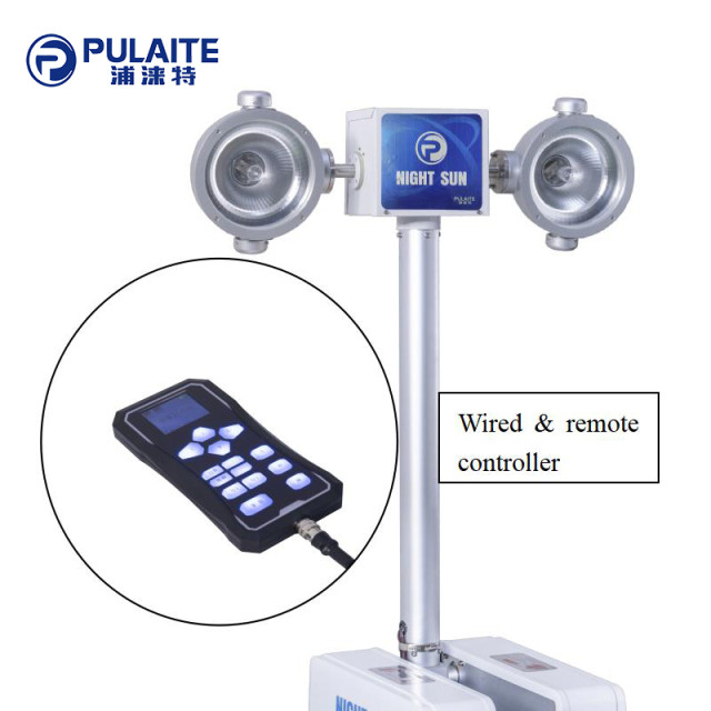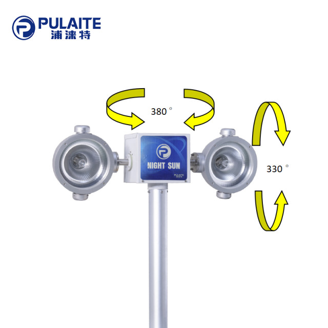 It has function of up and down, rising from horizontal to vertical 90 degree, the rotating head can be 380° vertical rotating and 330° horizontal rotating to complete positioning lighting.