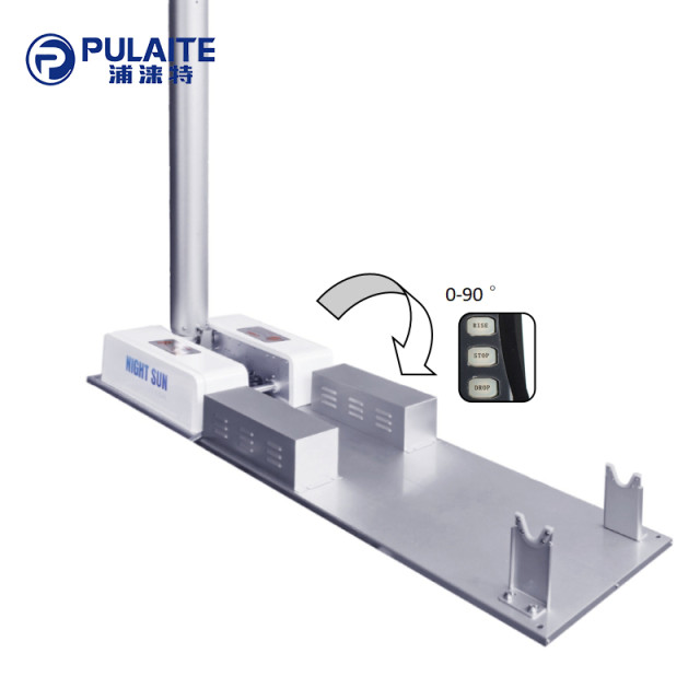 It has function of up and down, rising from horizontal to vertical 90 degree, the rotating head can be 380° vertical rotating and 330° horizontal rotating to complete positioning lighting.